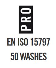 - EN ISO 15797 max 50x = tested and approved after 50 washes in a laboratory environment.